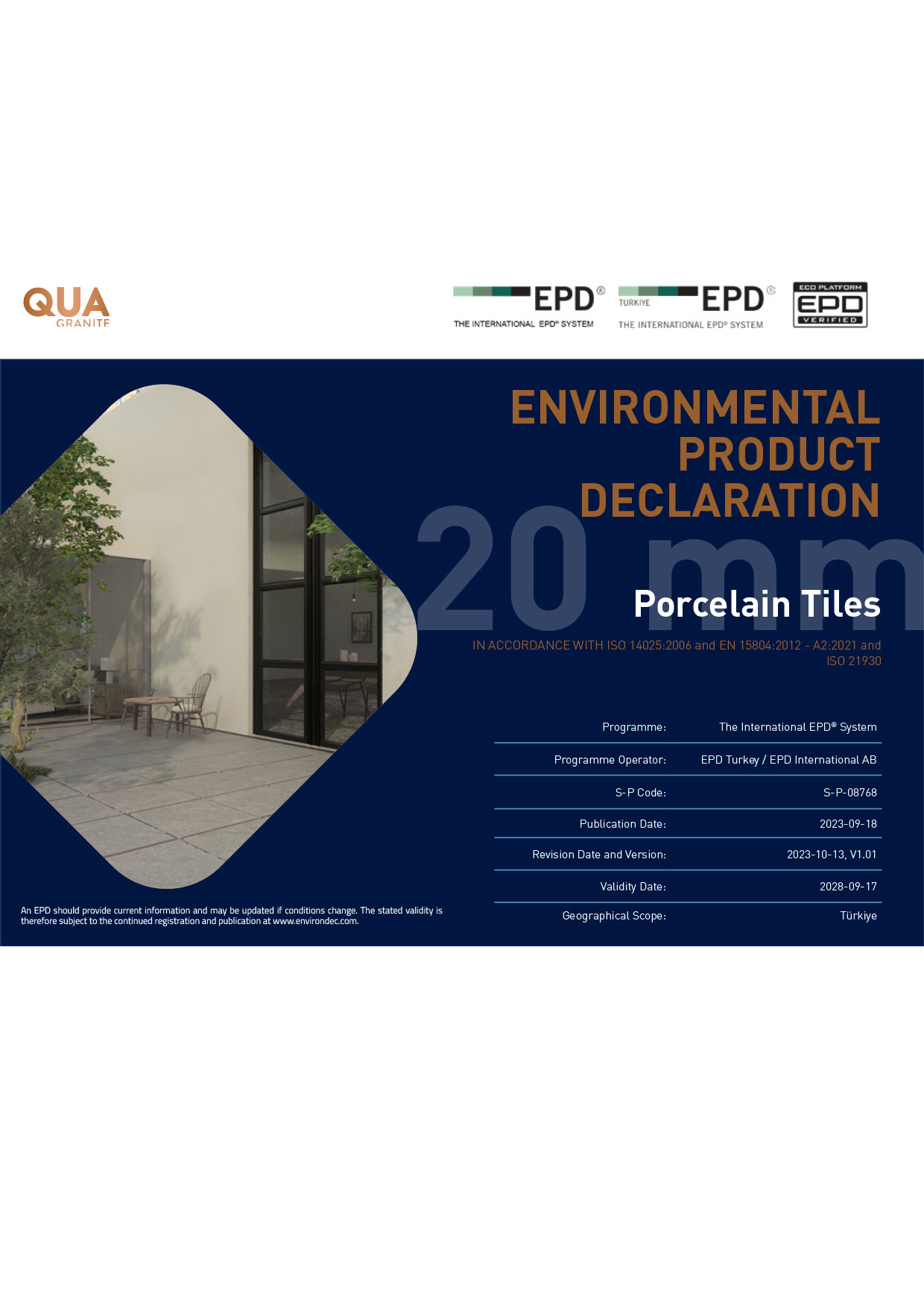 Enviromental Product Declaration Porcelain Tiles 20mm