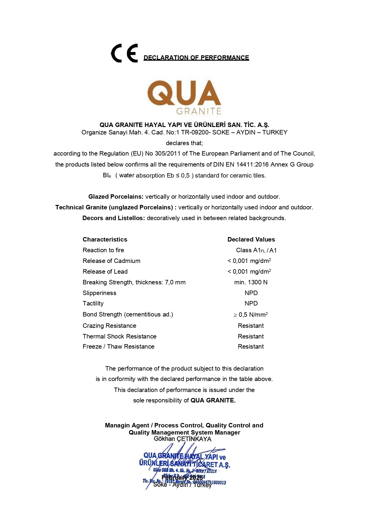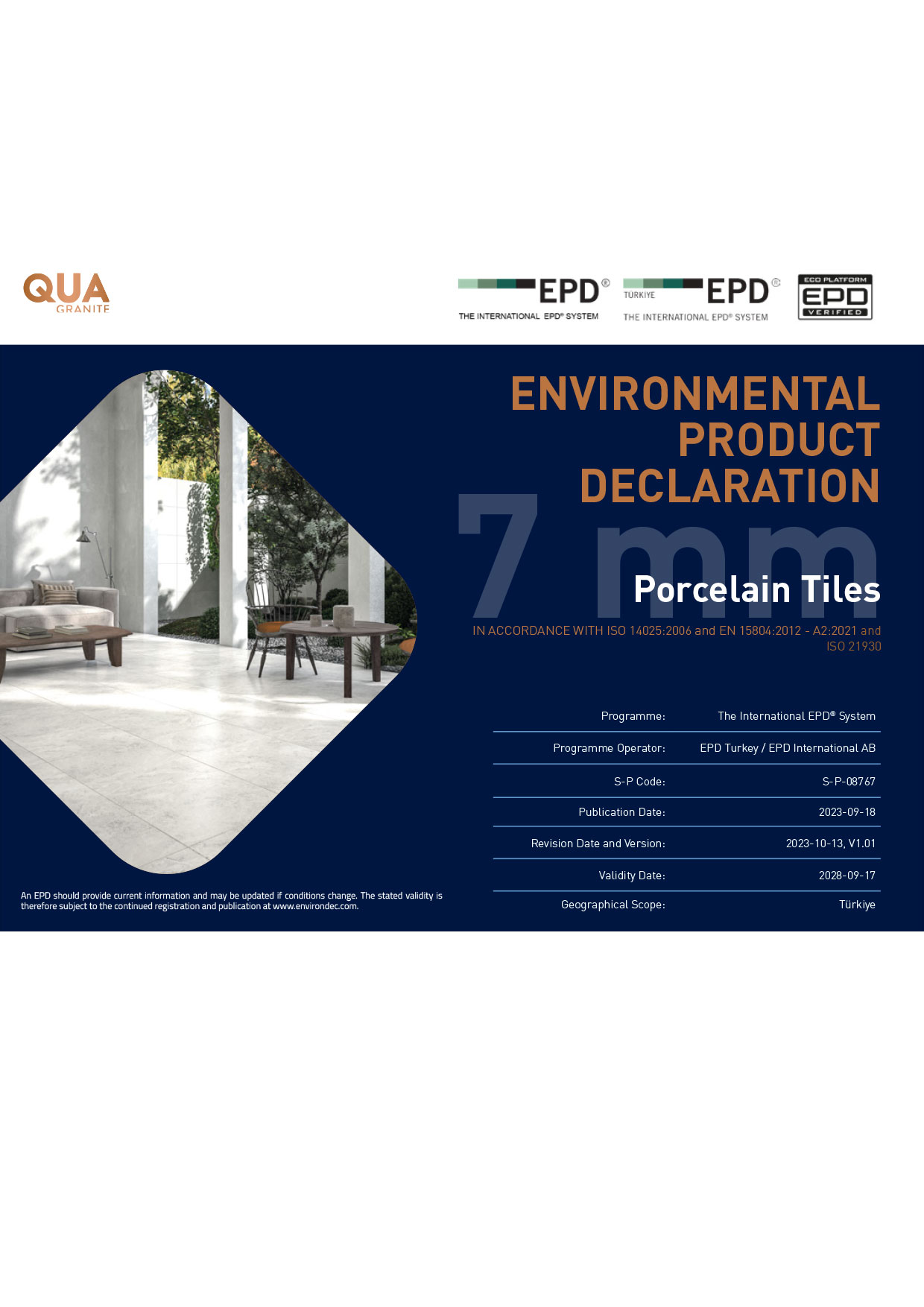 Enviromental Product Declaration Porcelain Tiles 7mm