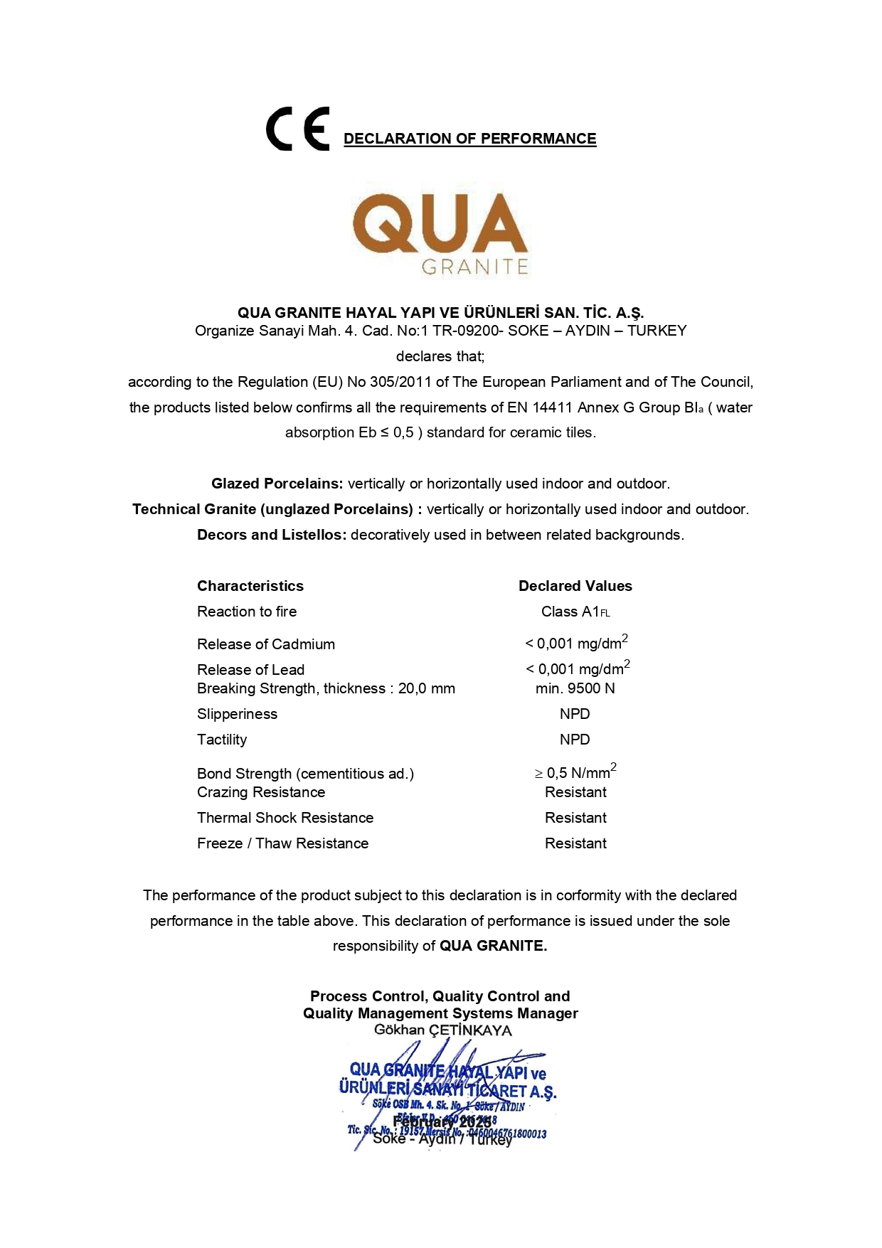 Declaration of Performance