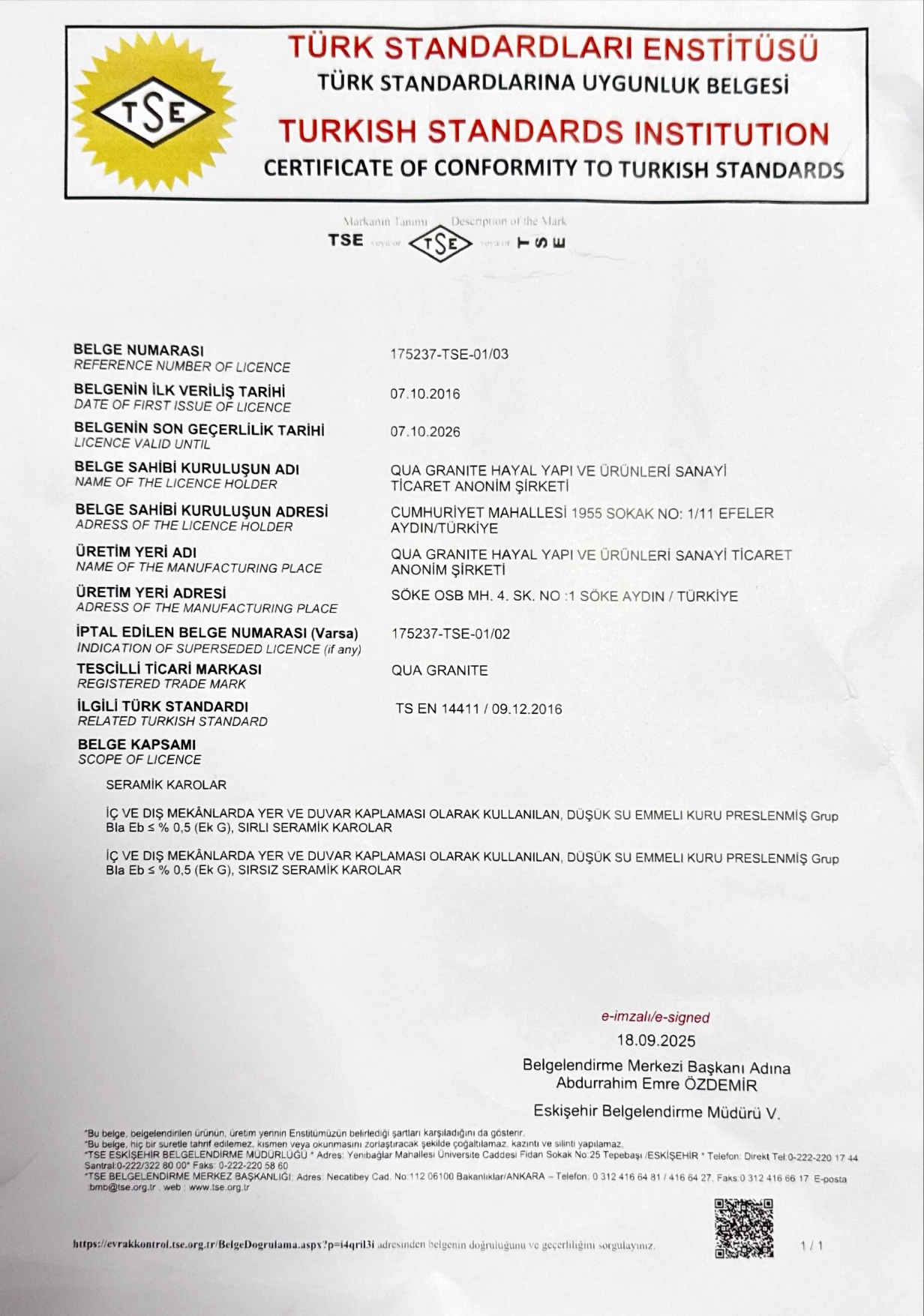 • Quality Certificates